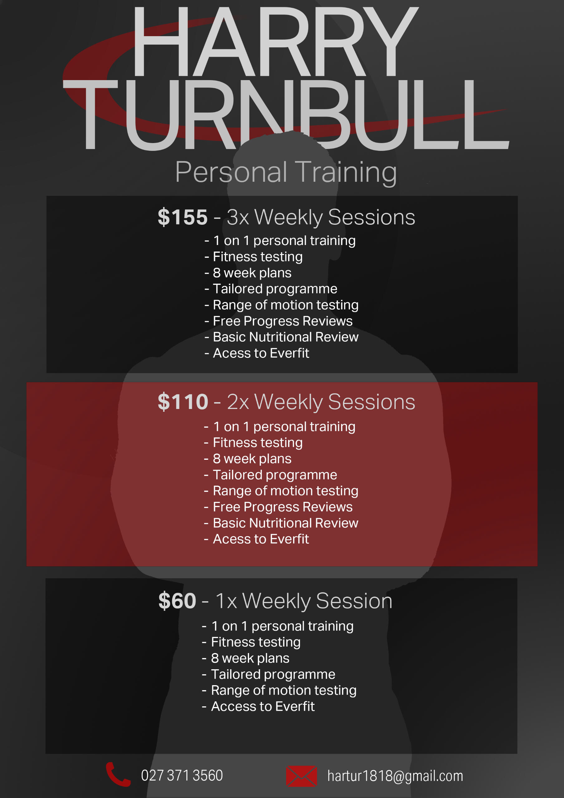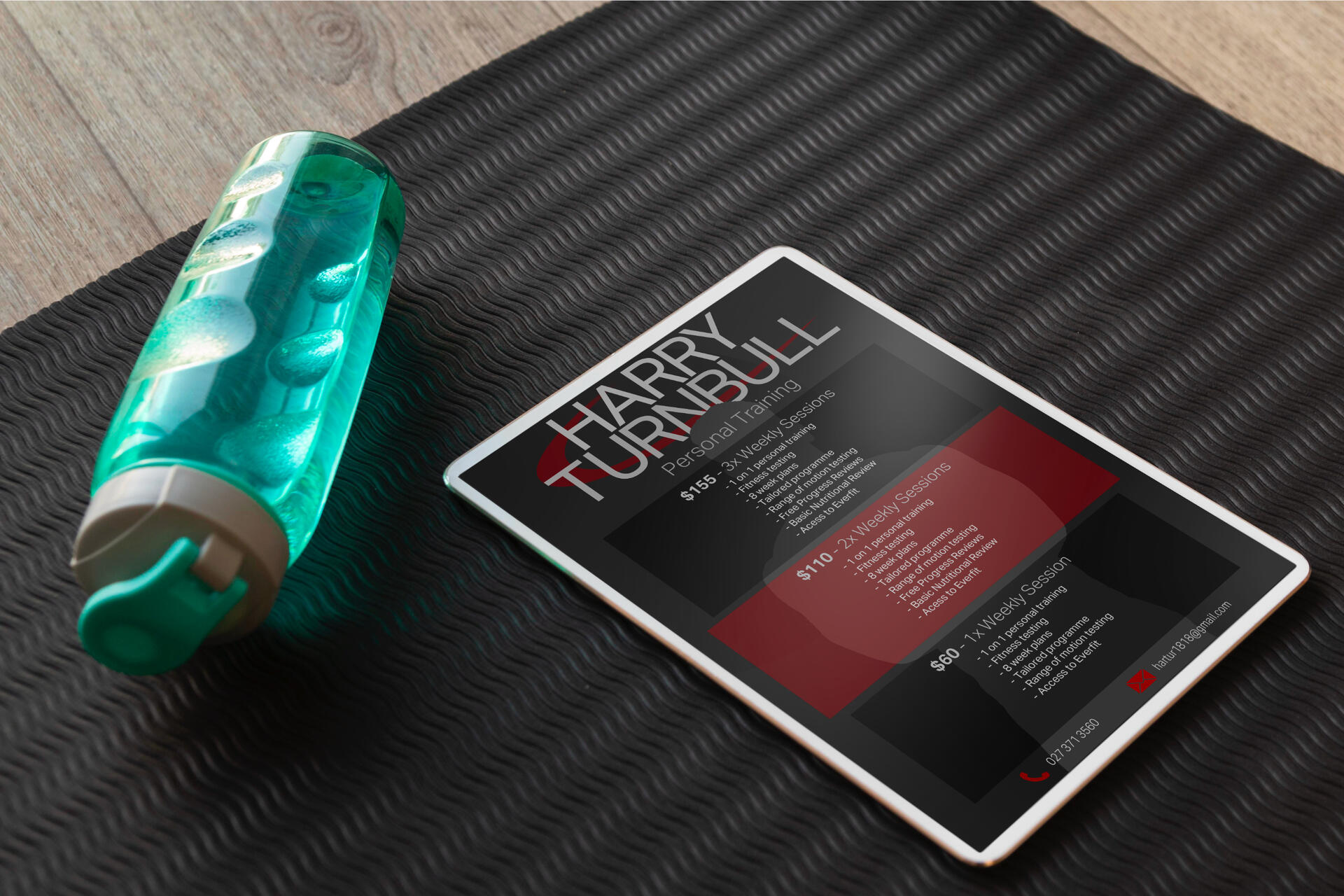 This project involved working alongside a personal trainer and designing a pricing card for his business. My design focus was catering towards my client's needs and formatting a clear and informative display of his pricing plans.